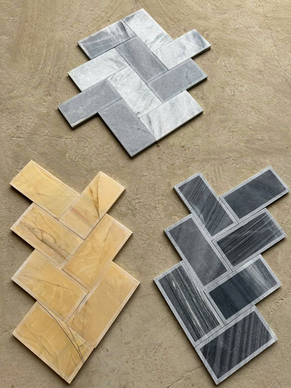 Sự kết hợp giữa các loại vân sọc ngang, sọc chéo, sọc dọc, vân loang làm cho bể bơi, sân vườn của gia chủ thêm phần độc đáo và nghệ thuật.